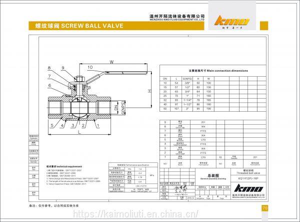The KQ11F (2P) threaded ball valve is a valve that is 90 degrees perpendicular to the channel. The ball rotates around the center line of the valve body to achieve opening and closing. The ball valve is mainly used in the pipeline to cut off, distribute and change the flow direction of the medium.