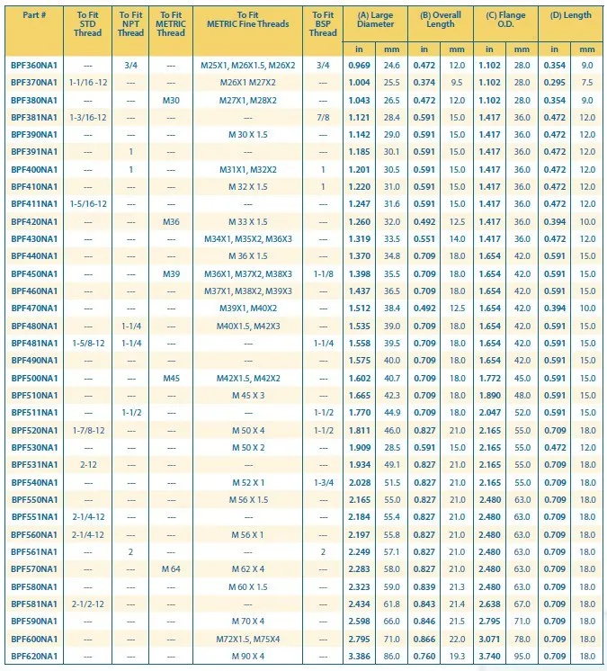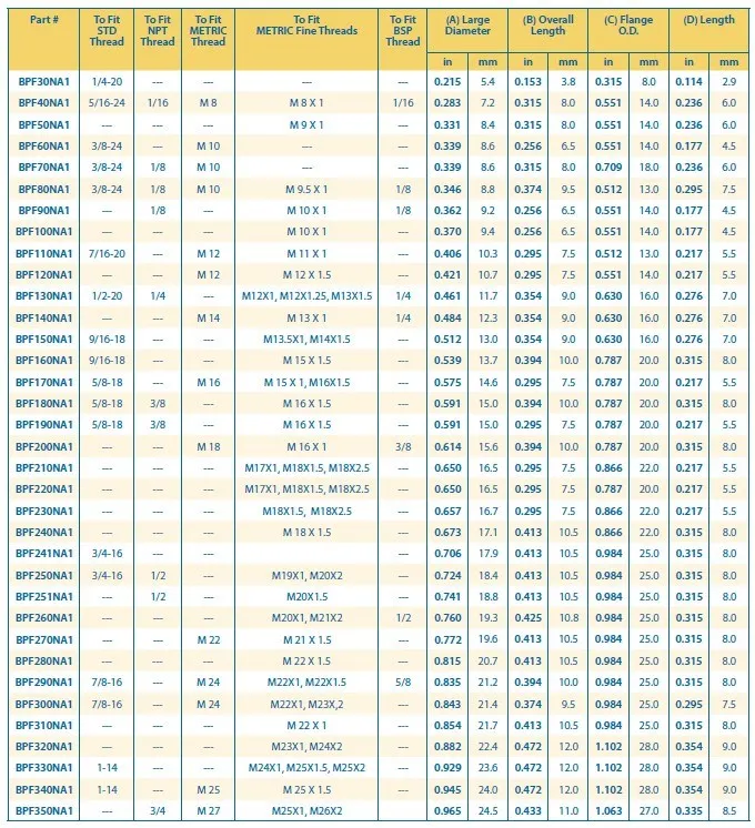 Our BPF Series Plugs are molded in Natural polyethylene plastic and sized to fit 1/16 thru 2 NPT or 1/4 -20 thru 2-1/2 -12 UN or 1/16 thru 1-3/4 BSP or M8 thru M90 Threads/Holes