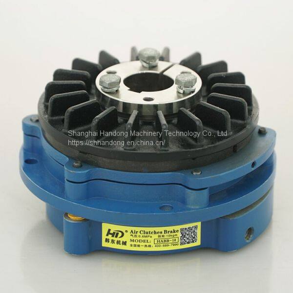 HABB air brake is also a kind of pneumatic friction brake, while it is normal brake, that is to say, it is spring applied air release brake. Its working is reverse of NAB normal releasing air brake. In normal status, HABB brake is braked by springs, after supplying air pressire, brake is released. It is suitable for preventing accident and emergency braking, such as entertainment equipment, packing machine, printing machine and etc.