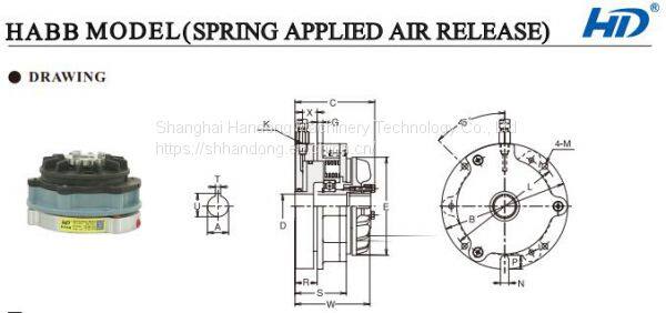 This HABB spring applied air release brake is strong, durable, efficient, precise orientation, control and overload protect advantage. Depends on its simple, durable, superior quality and other characters, now this brake is widely applied in modern industry. It is safe and easy operation.