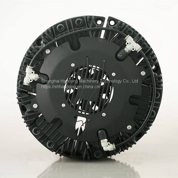 This combiflex pneumatic fan cool brake is composed of some groups of modulars, cooling fan and braking disk to be an integrated structure. This single modular is also can be used for braking independently. For example, DBK10 is one modular of it, its braking disk thickness is 10mm, braking disk diameter is 250mm or more. For the DBK20.2, it is two modular combined with a frame, suitable for braking disk thickness is 20mm. Four pieces of modular is also can be combined together without braking disk and cooling fan like this.