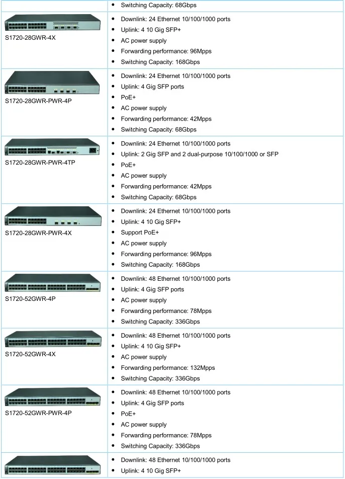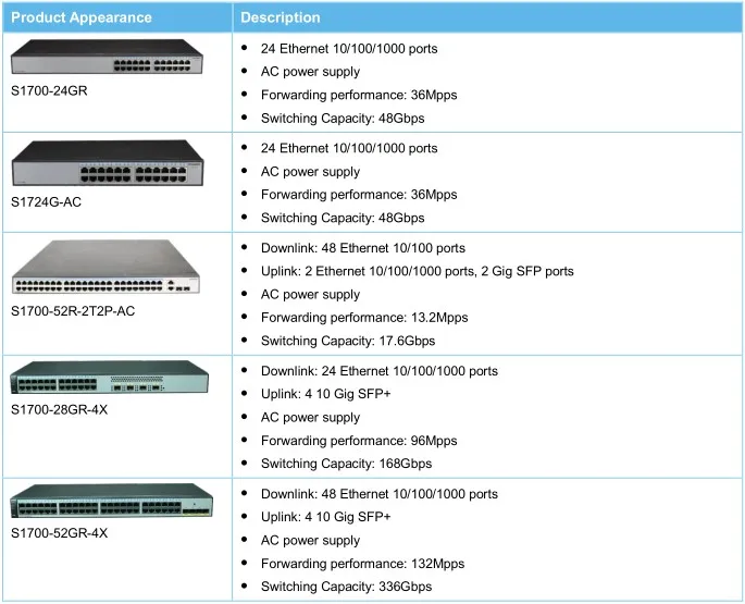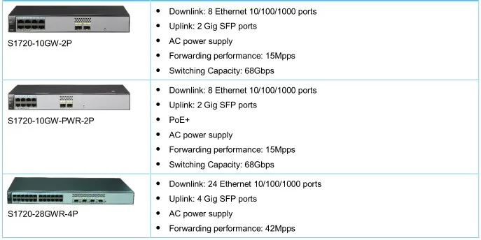 Depending on management types, S1700 series switches are classified into unmanaged switches, web-managed switches, and fully-managed switches.