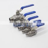 MINI Ball Valve Blue Handle 1/8 1/4 3/8 1/2 3/4 NPT Thread Female Male SS304 for Water Oil Acid 2 Way Ball Valve