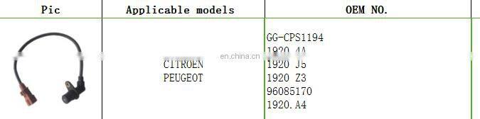 Crankshaft Positi Sensor For CITROEN PEUGEOT OEM 1920.4A 1920 J5 1920 Z3 96085170 1920.A4