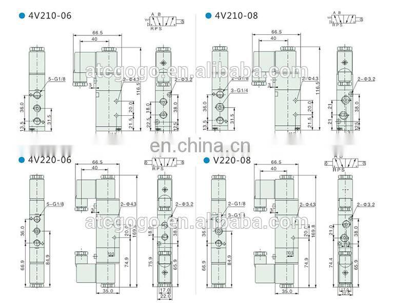 | Model | 4V210-06 | 4V220-06 | 4V230C-06 | 4V230E-06 | 4V230P-06 | 4V210-08 | 4V220-08 | 4V230C-08 | 4V230E-08 | 4V230P-08 | 3V210-06 | 3V220-06 | 3V210-08 | 3V220-08 |