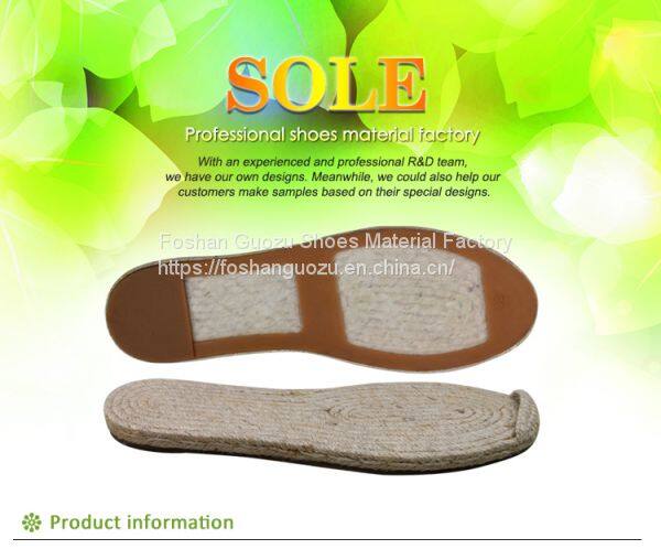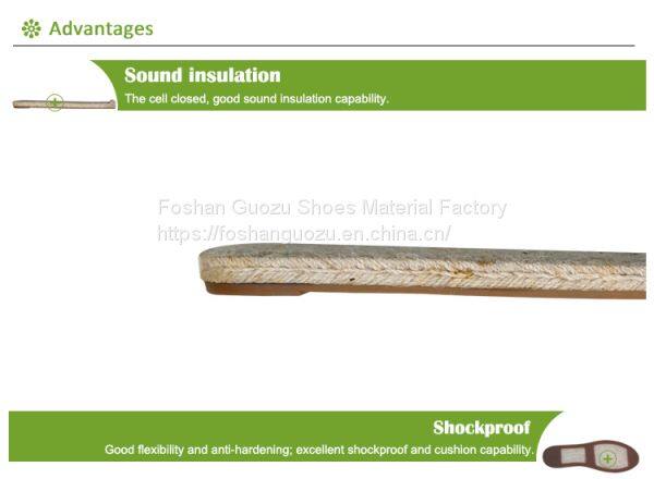 Foshan Guozu Shoes Material Factory which is located in Foshan City, about 45 minutes’ driving from Guangzhou airport, is specialized in manufacturing shoe soles in materials of Rubber,TPR, TPU, PU, one-time-injection eva, leather, PU& TPU injection, and other combined soles for a wide range of styles shoes, can meet different levels of customers’ requirements. And we are now also on the way of shoes design and development with our customers, becuase we have long term cooperative shoe factory closeby, which are professional in shoes making area.