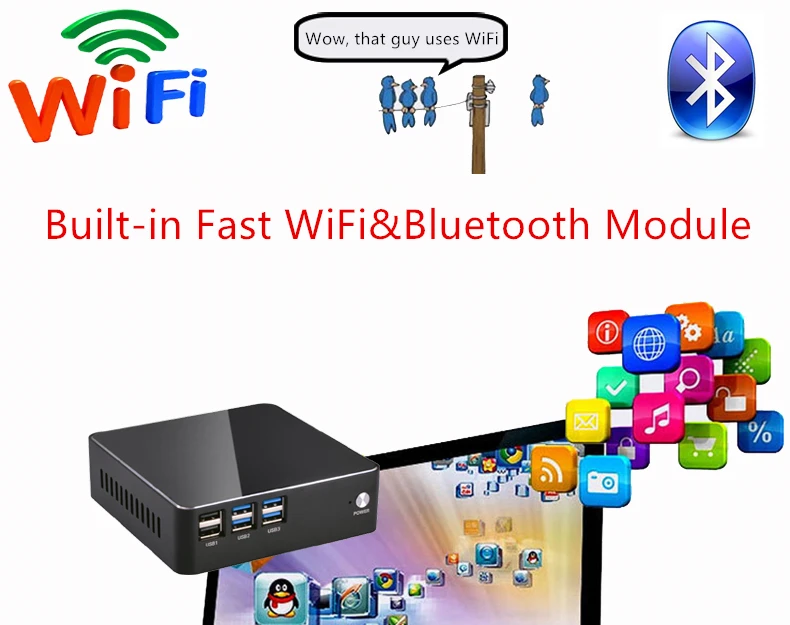 Package Content | 1*Mini PC; 1*power adapter; 2*Antennas, 1*Desk Base(optional),1* CD Driver | ||