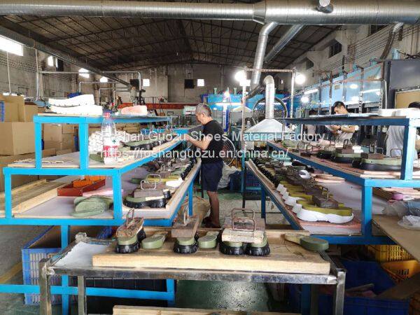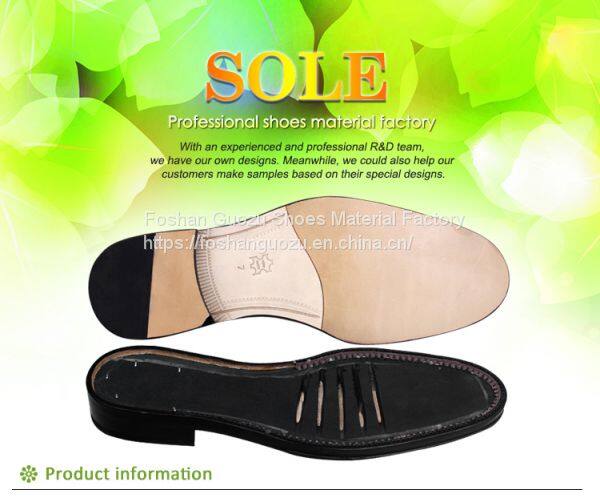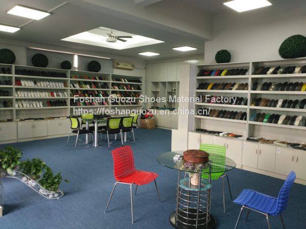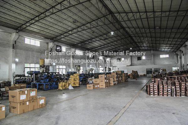Foshan Guozu Shoes Material Factory which is located in Foshan City, about 45 minutes’ driving from Guangzhou airport, is specialized in manufacturing shoe soles in materials of Rubber,TPR, TPU, PU, one-time-injection eva, leather, PU& TPU injection, and other combined soles for a wide range of styles shoes, can meet different levels of customers’ requirements. And we are now also on the way of shoes design and development with our customers, becuase we have long term cooperative shoe factory closeby, which are professional in shoes making area.