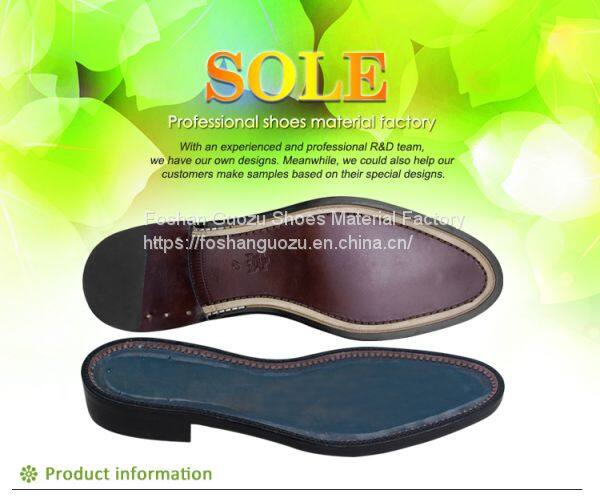 Foshan Guozu Shoes Material Factory which is located in Foshan City, about 45 minutes’ driving from Guangzhou airport, is specialized in manufacturing shoe soles in materials of Rubber,TPR, TPU, PU, one-time-injection eva, leather, PU& TPU injection, and other combined soles for a wide range of styles shoes, can meet different levels of customers’ requirements. And we are now also on the way of shoes design and development with our customers, becuase we have long term cooperative shoe factory closeby, which are professional in shoes making area.