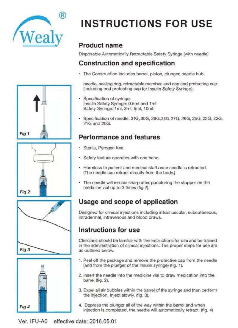 Home > Products > Medical equipment and consumables 2 > Single-use Retraction Syringe