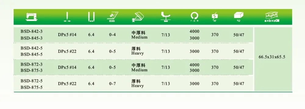 *BSD-845 With split needle bar, it’s suitable for corner sewing. *BSD-8750 is large hook corner sewing needle feed lockstitch sewing machine. *Needle Gauge Options: 3.2mm(1/8), 4.0mm(5/32), 4.8mm(3/16), 6.4mm(1/4), 7.9mm(5/16), 9.5mm(3/8), 12.7mm(1/2), 15.9mm(5/18), 25.4mm(1), 3.8mm(1-1/2). |