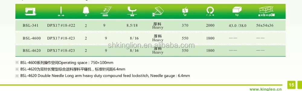 It is using sliding lever thread take-up, vertical rotating hook,double thread lockstitch, the upper and lower shaft through the timing belt; compound feed by presser foot, feed dog and needle, lever type stitch regular. High presser foot stoke with big stitch length cooperate with the tube sewing table, it is suitable to sew massive bag, luggage suitcase, seat cushion, especially for edge seaming on luggage bags.