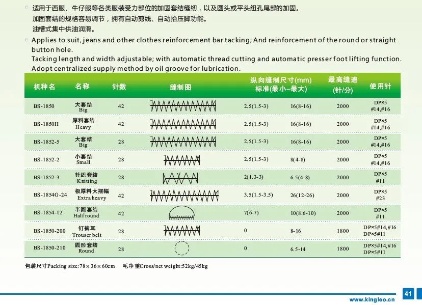 Applies to suit , jeans and other clothes reinforcement bar tacking; And reinforcement of the round or straight button hole.