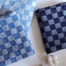 10oz 100%Cotton Jacquard Blue Checkered Fabric Washed Denim Material W068