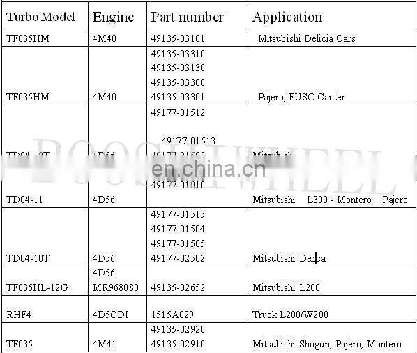 Engine TD04-11 4D56 Turbo 49177-01510 Car Turbocharger L300-Montero Mitsubishi Car Turbocharger