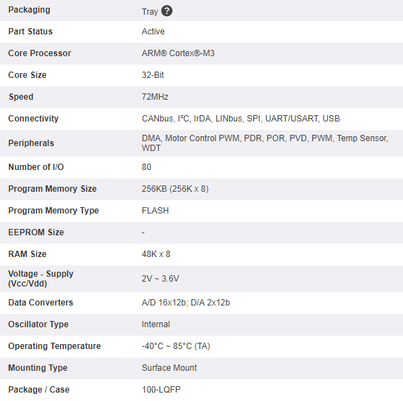 | Model Number | STM32F103VCT6 | Type | Logic ICs |
