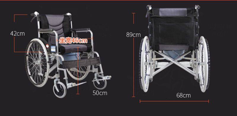 10. Specifications: Folding width 27cm, seat depth 42cm, seat width 45cm, seat height 50cm from the ground; Wheelchair size (CM): 103 * 68 * 90.