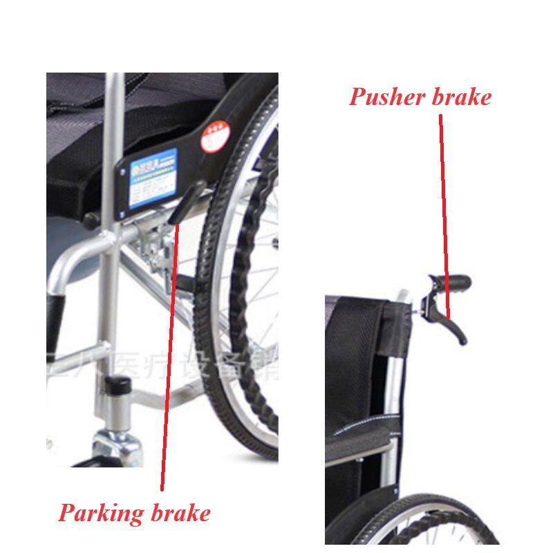 4. Braking: Adopting a steel elbow type braking device, the braking device is lowered below the seat surface after braking, making it convenient for users to get on and off the vehicle; The pusher is equipped with a hand linked brake with brake function.