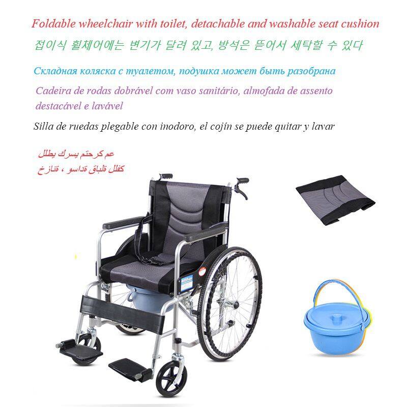 Wheelchair with foldable bedpan and detachable seat cushion for washing