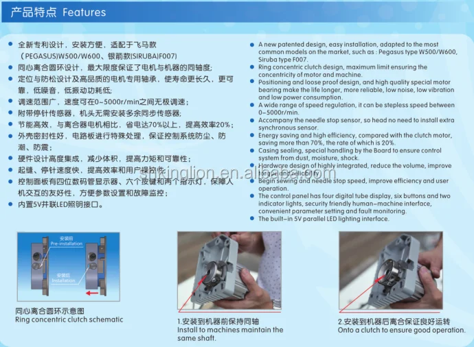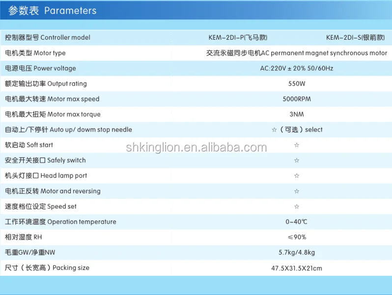 SHANGHAI KINGLION is a modern enterprise incorporated with professional talents, advanced technologies, strict management, and excellent facilities. In July, 2003, we obtained the certificate ISO9001:2000 International Authentication System. The business scope of the company covers various kinds of industrial sewing machines of medium to high level, as well as the accessories. The main products are spread between dozens of varieties, including lockstitch sewing machinse, overlock sewing machines, zigzag sewing machines, bag closer ,servomotors for sewing machines ,cording and ribbon devices for embroidery machines and etc.