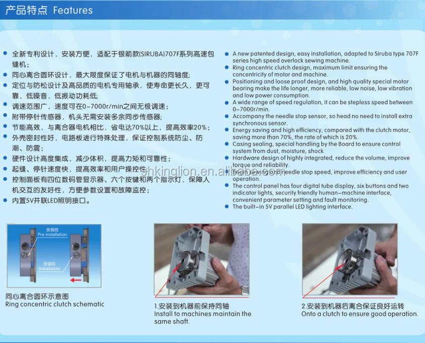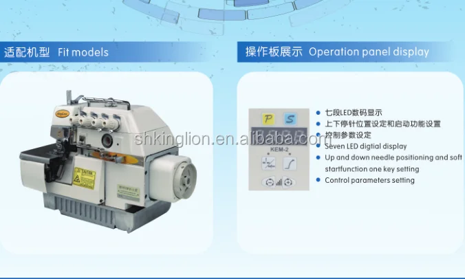 SHANGHAI KINGLION is a modern enterprise incorporated with professional talents, advanced technologies, strict management, and excellent facilities. In July, 2003, we obtained the certificate ISO9001:2000 International Authentication System. The business scope of the company covers various kinds of industrial sewing machines of medium to high level, as well as the accessories. The main products are spread between dozens of varieties, including lockstitch sewing machinse, overlock sewing machines, zigzag sewing machines, bag closer ,servomotors for sewing machines ,cording and ribbon devices for embroidery machines and etc.