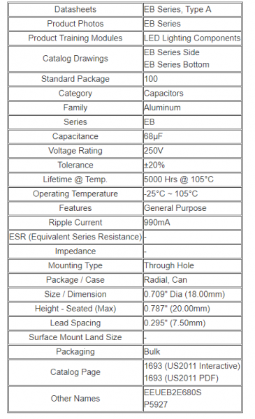 | Model Number | EEU-EB2E680S | Type | Aluminum Electrolytic Capacitor | |