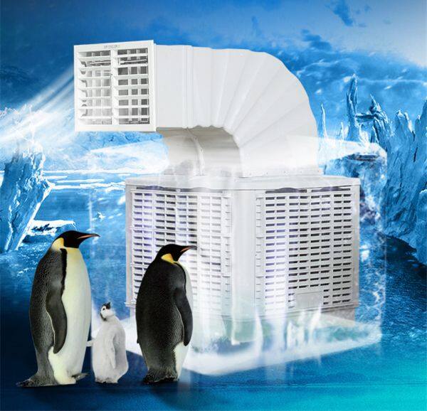 The water air cooler uses a fan to draw in the hot air, and passes over water-moistened pads, the water-moistened cooling pads immediately cools the air, then the evaporative cooler releases this cool moisturized air into the space.