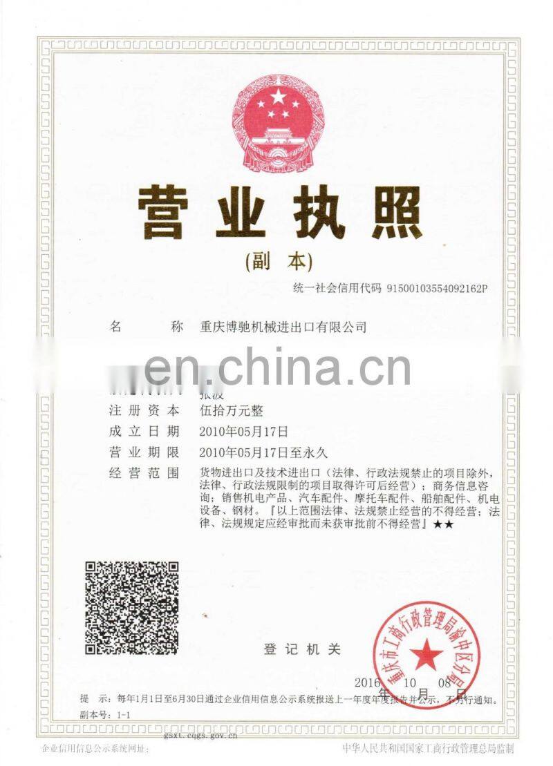 A: Chongqing bochi machinery accept the following payment methods: Escrow; Cridet card; Western union; Paypal; MoneyGram; T/T; D/P.