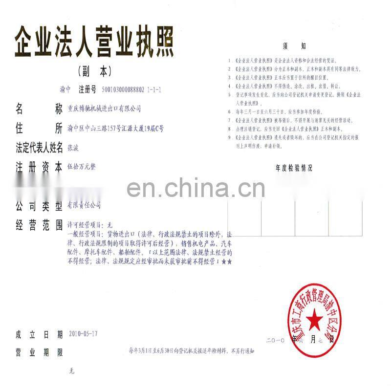 A: Chongqing bochi machinery accept the following payment methods: Escrow; Cridet card; Western union; Paypal; MoneyGram; T/T.