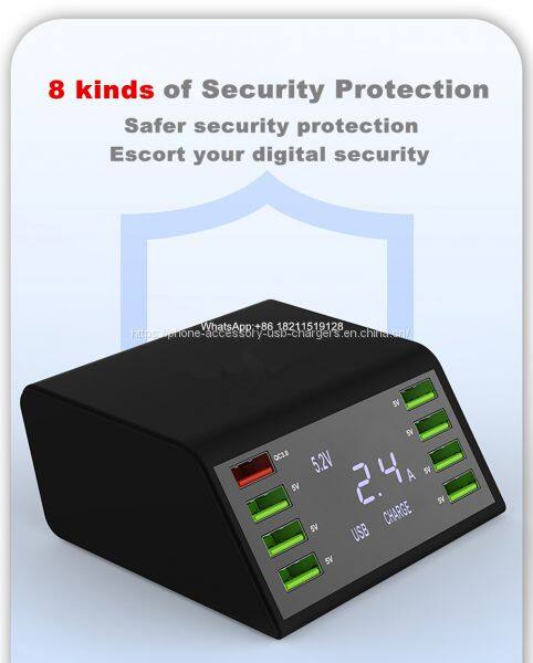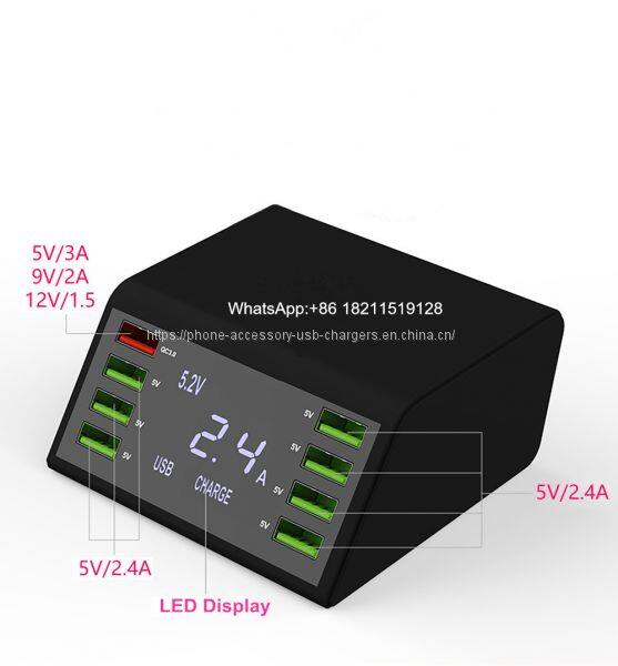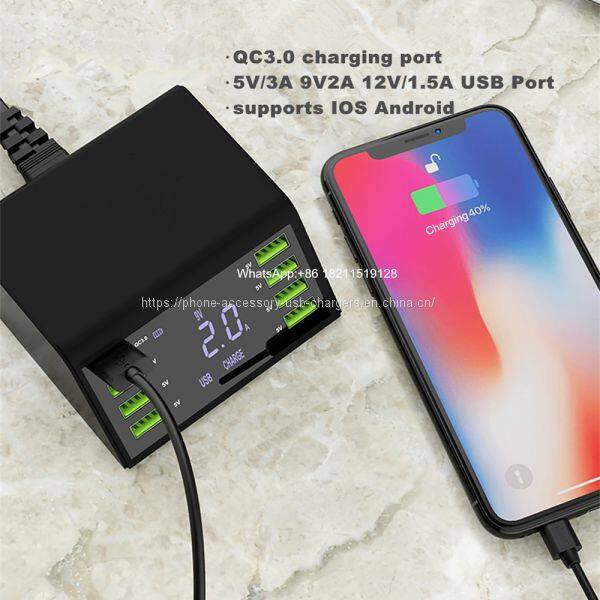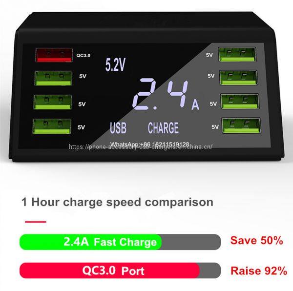 Factory Sell Wireless Multi Usb Charger 60w Digital Display 8 Ports Charging Station For Cell Phone