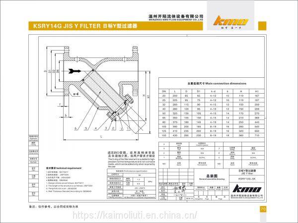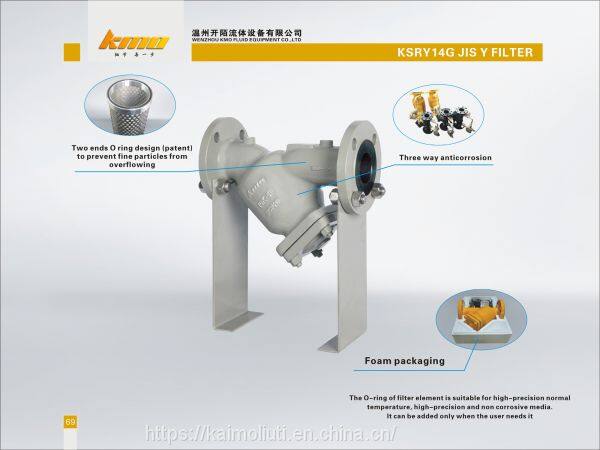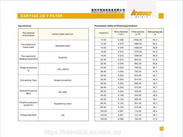 The KSRY14G JIS strainer is an indispensable device in the pipeline system. The structure and flange holes standard are according to JIS. It is usually installed at the inlet end of the equipment to filter particulate impurities in the medium and protect the valves or other equipment. KMO's products have the characteristics of advanced structure, low resistance, and convenient drainage. The connection way are flange connection and thread screw connection. The applicable medium of the product is water, oil, gas and corrosive medium. (oxygen is separate) The filter can be made according to user’s requirements. The internal parts are made of stainless steel, which is durable. The mesh of the filter can be set according to customer needs. Generally speaking, the mesh of water strainer is 18~30 meshes. The mesh of the gas strainer is 40~700 meshes, and the mesh of the oil strainer is 100~480 meshes.