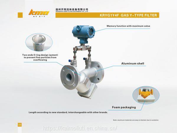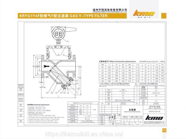 The KRYG1Y4F strainer is an indispensable device in the pipe system that conveys gas and other media. It is generally installed at the inlet of gas equipment to remove the impurities in natural gas, liquefied petroleum gas and other media, protecting the valves, flow meters and pressure control devices, etc. KMO's strainer has advantages of advanced structure, low resistance and convenient sewage discharging. The applicable media includes liquefied gas and natural gas. According to user needs, the filter element is made of stainless steel with good firmness and durability. The meshes of the filter screen can be set according to user needs, generally selectable between 80~700 meshes. The connection ways include flange and screw. The strainer can be optionally equipped with a differential pressure gauge, which can remind the user when it needs to clean. The item has the small volume, fine filtering accuracy, convenient installation and maintenance.