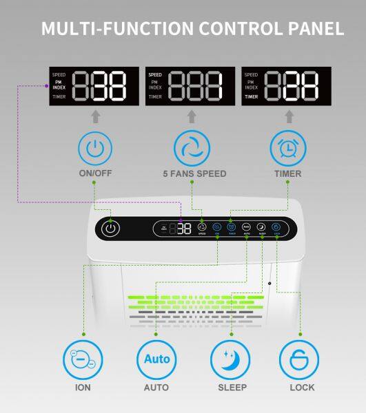 7.Filter Replacement Reminder, Child Lock, PM2.5 Display