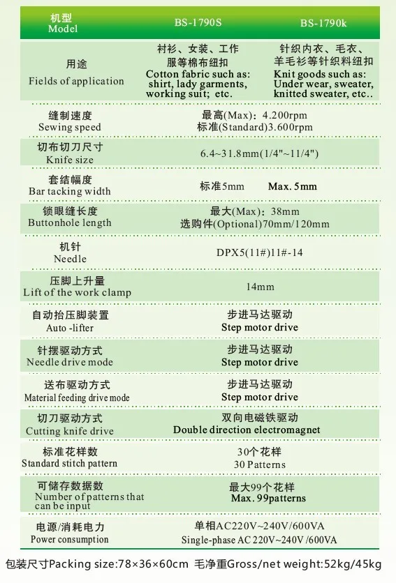 | Feed Mechanism | Drop Feed | Stitch Length | 5mm | |