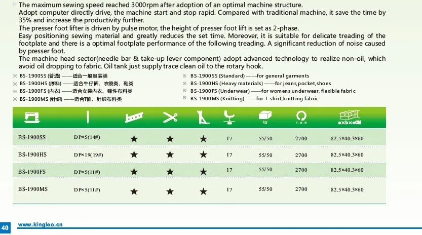 | Max. Sewing Thickness | 15mm | Max. Sewing Speed | 1500rpm | |