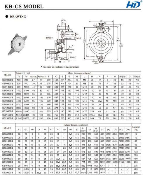 From above technical data, we can see that this KB clutch and brake unit is also air shaft structute, its bore diameter is 27-200mm for different models. Model larger, its bore diameter is larger, and torque is higher, too.
