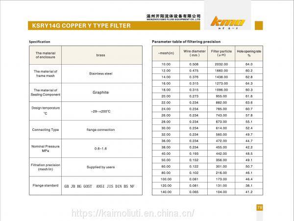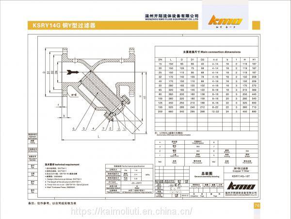KSRY14G Y strainer is an indispensable device in the transportation pipeline system. It is usually installed at the inlet end of the equipment to filter the particulate impurities in the medium to, protecting the normal use of valves and other equipment. KMO's strainer has the characteristics of advanced structure, small resistance, and convenient drainage. The applicable medium for this product is water and oil. The filter can be made according to user requirements, and the internal parts are made of stainless steel, which is more durable. The connection way includes flange type and thread screw type. The product has small size, fine filtering accuracy, good filtering effect, easy installation and maintenance, low cost, and short sewage discharge time.