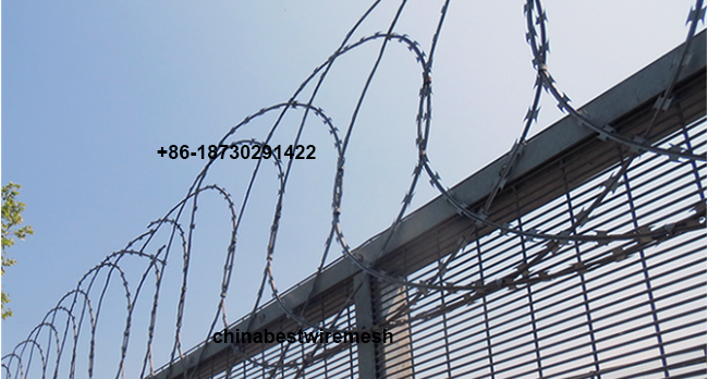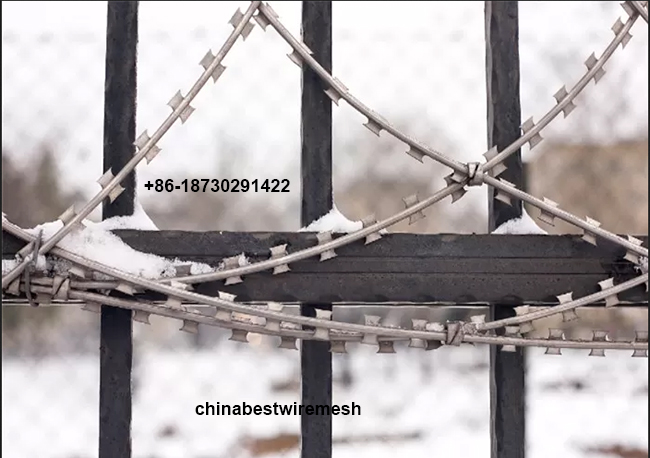 Hot Dipped Galvanized BTO-10 Flat Razor Wire on fence top