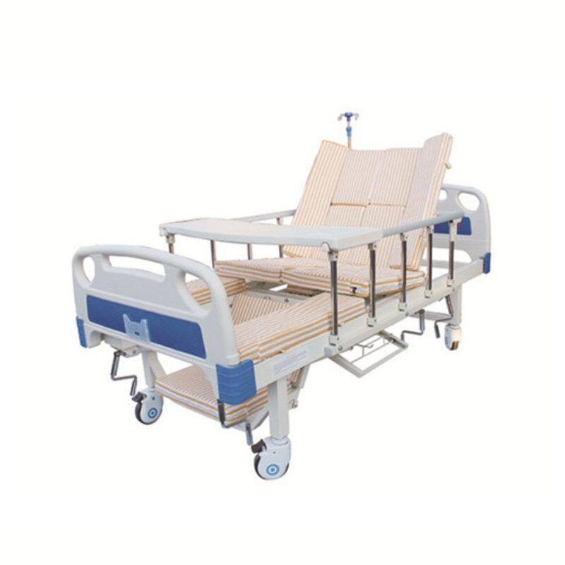 ABS headboard and tailboard+5-pillar guardrail+ABS dining table+silent casters+infusion stand+6cm mattress+bedpan+shampoo basin+toilet.