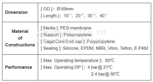 PES Series filter cartridges are constructed of imported hydrophilic asymmetric PES membrane, imported non-woven fabrics, and silk netting as support and then pleated. The cage, PP core, and end cap are thermally welded with media without using any glue. All cartridges are manufactured and assembled in a clean room environment. 100% of the cartridges are integrity tested and flushed with EDI pure water. It is suitable for filtering weak acid/alkali based liquid and ultra pure water.