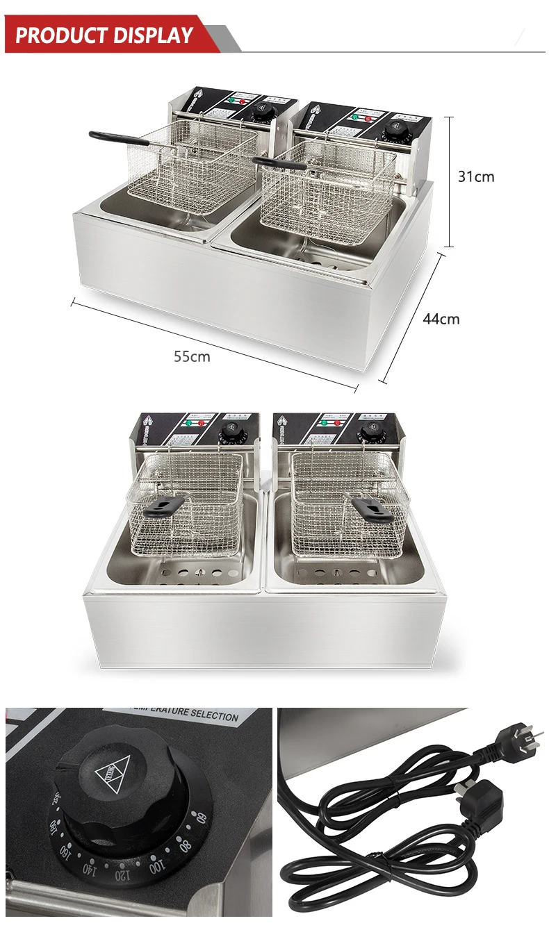 6L+6L Electric Stainless Steel Double Tank Fryer Stainless Steel Broast Chicken Fryer WT/8613824555378US$ 34 - 38MOQ: 1 Piece