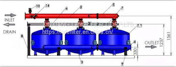 The shallow sand filter uses quartz sand filter material as the media filter element, and the water is filtered from top to bottom. The device is generally composed of multiple standard high-speed sand tank units with unique water distributors and water collectors inside. , With a unique two-way automatic flushing valve, it can realize the back flushing of multiple standard high-speed sand tanks one by one in the normal system operation, and fully automatic program control.