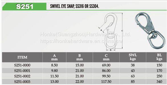 Stainless Steel Marine Safety Carabiner Spring Snap Hook With Eye