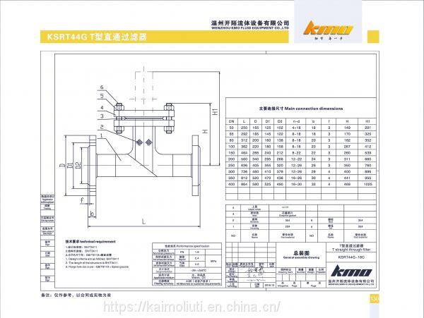 The KSRT44G strainer is an indispensable device in the pipeline system. It is usually installed at the inlet end of the equipment to filter particulate impurities in the medium and protect the valves or other equipment. KMO's products have the characteristics of advanced structure, low resistance, and convenient drainage. The connection methods are flange type and screw type. The applicable medium of the product is water, oil, gas and corrosive medium. (oxygen is separate) The filter can be made according to user’s requirements. The internal parts are made of stainless steel, which is durable. The mesh of the filter can be set according to customer needs. Generally speaking, the mesh of water strainer is 18~30 meshes. The mesh of the gas strainer is 40~700 meshes, and the mesh of the oil strainer is 100~480 meshes.