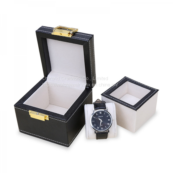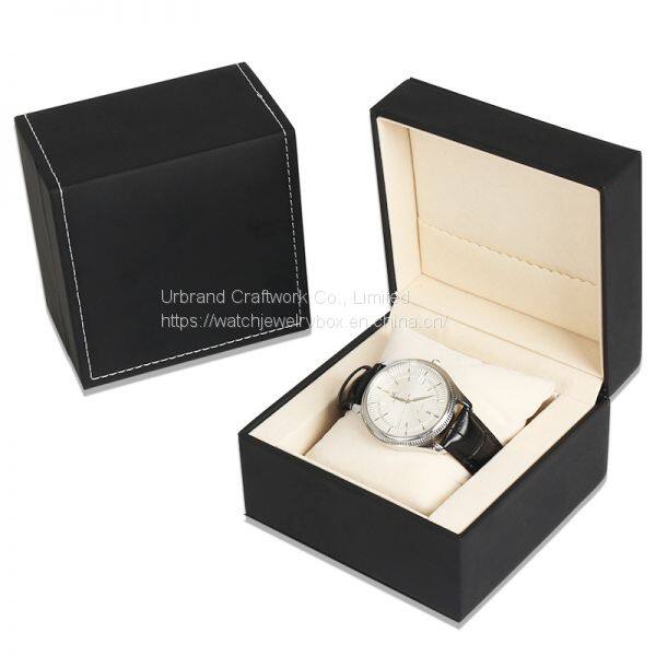 Square watch box covered PU leather, with stitching outside, custom sponge pillow for holding the watch.