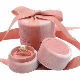 Luxury Small Pink Ring Gift Packaging Velvet Inserts Jewelry Round Box With Ribbon
