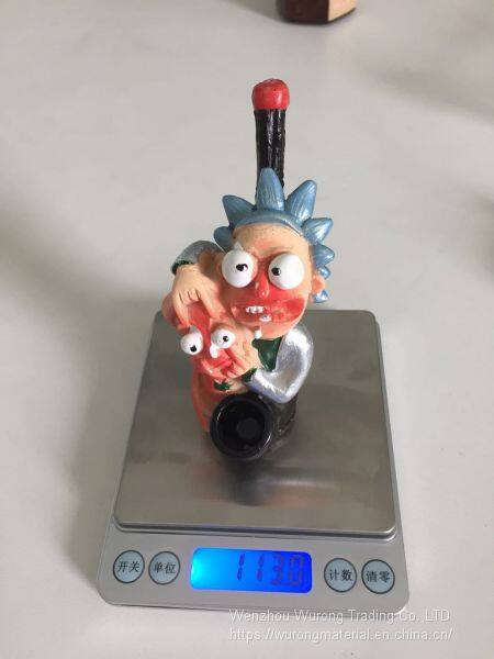The tobacco pipe is made of wood and resin, its length is 125mm and the pipe diameter is 16mm, the Rick and Morty cartoon figure shaped on the thin tube with small round head, its weight is 113g.