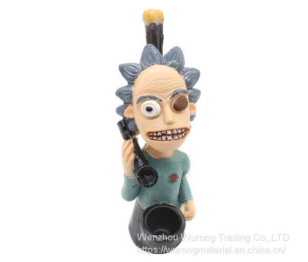 125mm Length Wooden Resin Short Tobacco Pipe With Rick and Morty Figure Shape for Smoking