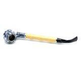 410mm Length Wooden Resin Long Tobacco Pipe With Small Blue and White Porcelain Head for Smoking