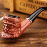 245mm Length Wooden Resin Medium Tobacco Pipe With Small Black Carving Head for Smoking